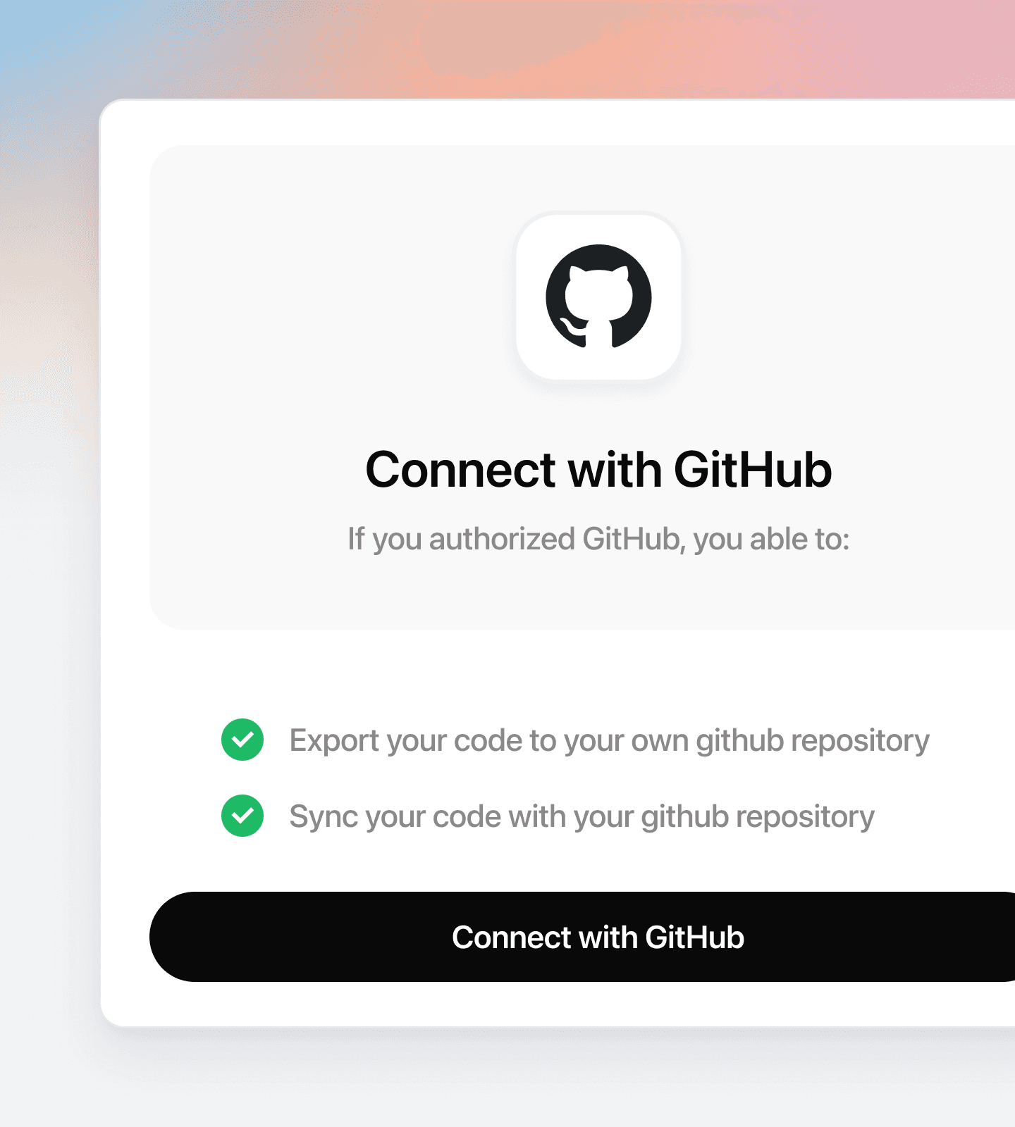 Connect your GitHub account to edit, version, and manage your app locally using your existing workflow.